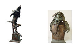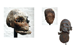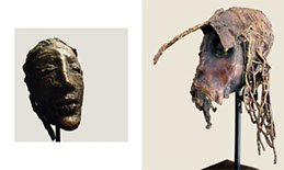 L’artiste présente aussi une série de têtes entre deux mondes, terreuses et colorées, osseuses et pétrifiées, proches et lointaines. Quand d’autres s’épuisent à manifester leurs doutes et leurs distances, Marie Remmery réveille à mains nues quelque chose de très enfoui dans notre humanité, comme si elle se projetait au delà de ce qu’on appelle la « civilisation » et dont on sait si bien, depuis Valéry, qu’elle est mortelle. A moins de la dépasser.
