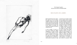 La relation entre la vie et la mort est un thème central de son œuvre, elle est révélée comme un accord naturel, entre le plein et le vide, un espace de connexion, dʼouverture et dʼéquilibre. Le bord des Limbes évoque cet espace indécis, entre Enfer et Paradis, où errent les enfants innocents. Cʼest dans cet entre-deux, dans ce moment poignant où elle accompagne son mari devenu dépendant, que lʼartiste a développé avec beaucoup de sensibilité une œuvre graphique singulière.