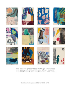 La pratique d’Hugo Villaspasa s’articule majoritairement autour de la peinture. Le dessin, la gravure ainsi que la photographie documentent ses recherches. C’est le processus, l’action même de peindre qui l’intéresse. Que ce soient sur toiles, papiers ou supports quelconques, il se réfère de façon méthodique à une collection d’esquisses formant une sorte de bible personnelle.