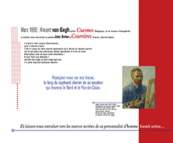 Son objectif ? Rencontrer le peintre Jules Breton, qu’il admire beaucoup, et lui demander conseil. C’est à l’issue de cette longue marche (près de deux cents kilomètres aller-retour en passant très probablement par Anzin, Raismes, Hasnon, Marchiennes, Douai, Auby, Warlaing, Escaupont, Fresnes, Condé etc) que l’ardent jeune homme, dont la mission d’évangéliste a tourné court à l’ouest de Mons (Belgique), décide de devenir peintre.