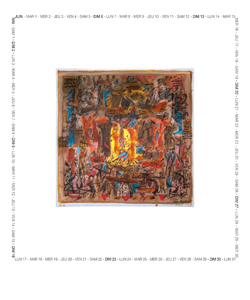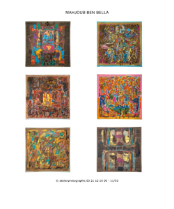 A chacun son mythe. Les peintures en ont aussi. Mahjoub Ben Bella vers six, sept ans. Il ne savait pas encore tout à fait lire ni écrire. Il n’avait que des rudiments. Il ne comprenait pas le sens des mots. Il s’emparait de livres scientifiques ou médicaux, de dictionnaires. Il recopiait avec application des pages entières en inventant, en réinventant les caractères, les mots, les lignes. ça avait un rapport avec le tricot, dit-il aujourd’hui. Il adorait tricoter. Une maille à l’endroit, une maille à l’envers. Le tricot c’est comme une écriture serrée. Ecriture par la laine ou par le fil. Le motif naît de l’entrelacement des mailles. La maille naît du geste expert des doigts. Recopier des livres et tricoter, les deux seules passions à cet âge. Avec le foot peut-être..