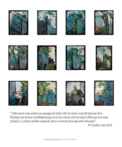 A partir d’une même prise de notes photographiques dans le reflet des vitres de l’atelier, plusieurs situations picturales sont créées.