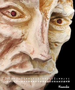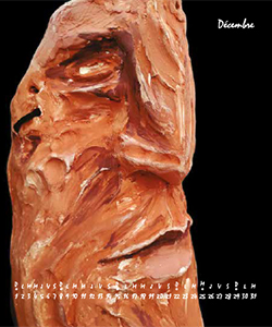 Un jour dans l’Oise une rencontre, une discussion verre à la main sur les fours à bois avec un potier passionné, un alchimiste et cette lumière, cette flamme, ce désir naissant de s’affronter au feu, de s’exprimer avec l’argile. Du dessin au volume, du papier à la terre il découvrit cette sensation, celle d’une création plus intime. Le modelage, un corps à corps avec la glaise, puis les outils de la sculpture, des marques, des cicatrices et les engobes les oxydes le talc pour les couleurs les dépôts les patines. Rarement de croquis préparatoires, une entrée en matière directe dans l’argile, le mouvement des mains et petit à petit une forme inconnue lui apparaît, il la suit, elle se découvre, il l’investit. Et puis les feux de bois avec des fours rudimentaires, en pierre, en bidon, en fosse pour les cuissons. Ce sont des événements uniques et intenses où l’engagement du corps et de l’esprit est tout entier tourné sur la conduite de la flamme, le présent se nichant solitaire dans cette relation étroite. Après une période multiposte de débrouille parisienne, les années s’enchaînèrent dans l’édition jeunesse et le film d’animation comme dessinateur, chef d’équipe, responsable de projets, directeur d’ouvrages. Des années d’imprévus, de découvertes, de rencontres, de réalisations. Le départ à l’île de la Réunion pour la mise en place d’un studio d’animation mit fin à sa période feu et terre sur le mode pause longue. Et à nouveau ce jour… Un jour dans le Pas-de-Calais, le face à face avec l’argile, y faire émerger la figure enfouie dans l’informe, revenir au mouvement et faire naître dans ces formes figuratives, qui ne s’attachent ni au réalisme ni ne s’en inquiètent, une partie de son histoire et des histoires des passagers que nous sommes. À nouveau le feu qui détruit ou transforme. Faire avant tout, faire surtout et peut-être pièce après pièce, découvrir ce qu’il cherche là dans ce pétrissement ? Qui le regarde à travers tous les visages de ce panthéon, que disent-ils de lui, de son rapport à notre humanité ? De quelle mémoire, de quelle observation inconsciente s’agit-il ?